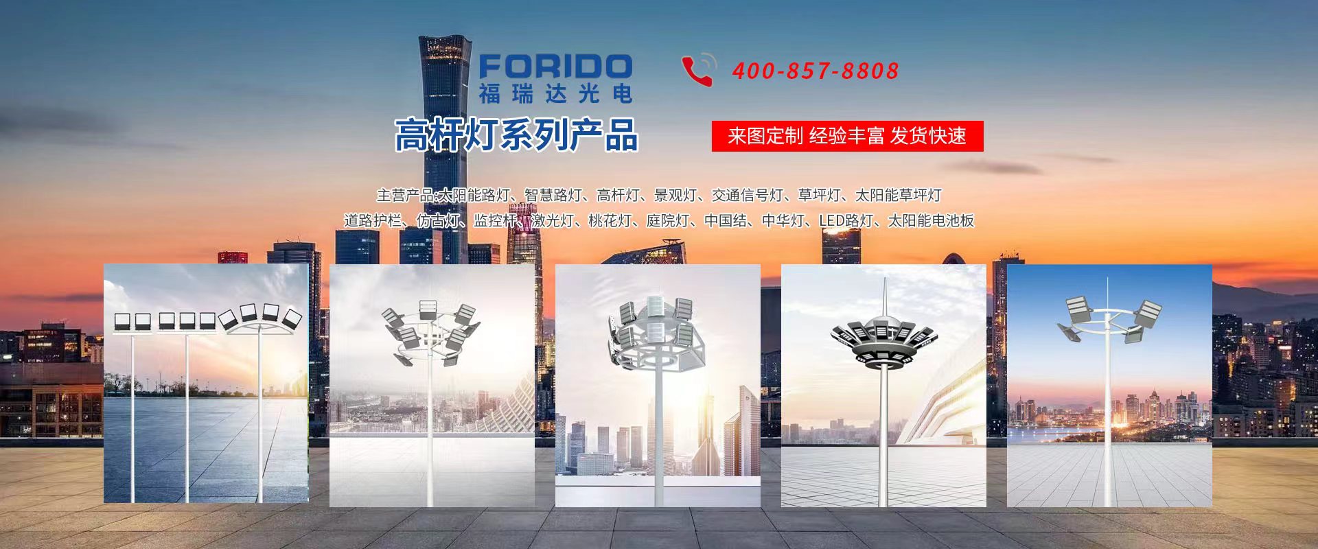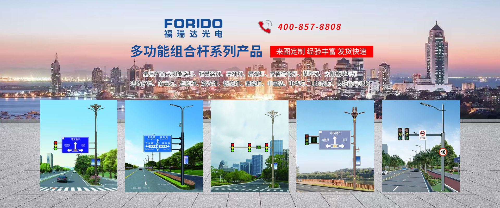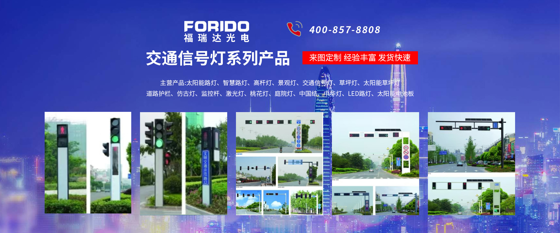 揚(yáng)州福瑞達(dá)光電科技有限公司位于淮左名都?xì)v史文化名城、中國(guó)路燈制造基地?fù)P州市北郊菱塘工業(yè)園,公司占地面積76000平方米,注冊(cè)資金10518萬(wàn)元,擁有高級(jí)技術(shù)嫻熟的員工280多人,擁有大型折彎?rùn)C(jī)、激光切割、數(shù)控注塑機(jī)、壓鑄機(jī)、自動(dòng)埋弧焊、氣焊、彩色粉末靜電噴塑等大型自動(dòng)化設(shè)備,我公司是一家集設(shè)計(jì)、研發(fā)、生產(chǎn)、銷(xiāo)售、施工安裝服務(wù)為一體的戶(hù)外交通照明產(chǎn)品制造商,主要生產(chǎn)智慧路燈、太陽(yáng)能路燈、LED路燈、高桿燈、景觀燈、交通信號(hào)燈、交通標(biāo)志牌、通信鐵塔、路跨鋼結(jié)構(gòu)、公交站臺(tái)、太陽(yáng)能光伏組件、景點(diǎn)亮化、樓宇亮化工程的設(shè)計(jì)施工等。公司秉承開(kāi)拓創(chuàng)新、銳意進(jìn)取、精誠(chéng)服務(wù)的企業(yè)精神,堅(jiān)持以“誠(chéng)信為本、技術(shù)為先、服務(wù)是金”的合作理念,我們憑借先進(jìn)的制造工藝、優(yōu)質(zhì)的產(chǎn)品質(zhì)量、合理的市場(chǎng)價(jià)格和完善的售后服務(wù)贏得了廣闊的市場(chǎng)和客戶(hù)的信賴(lài)。  我公司已通過(guò)ISO9001質(zhì)量體系認(rèn)證、ISO14001環(huán)境管理體認(rèn)證,CQC產(chǎn)品認(rèn)證,中國(guó)節(jié)能產(chǎn)品認(rèn)證,通過(guò)“CCC”強(qiáng)制性產(chǎn)品認(rèn)證,具有市政總承包,照明,交安,設(shè)計(jì)等資質(zhì)···